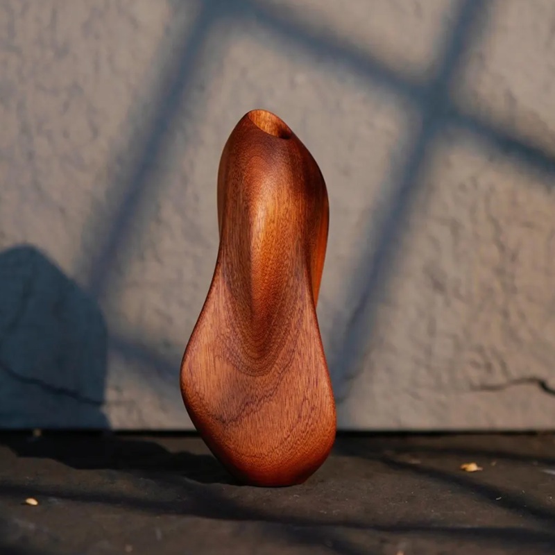 Le vase en bois est fabriqué à partir de bois de noyer, avec des couleurs profondes et de belles textures, dégageant noblesse et charme rétro.