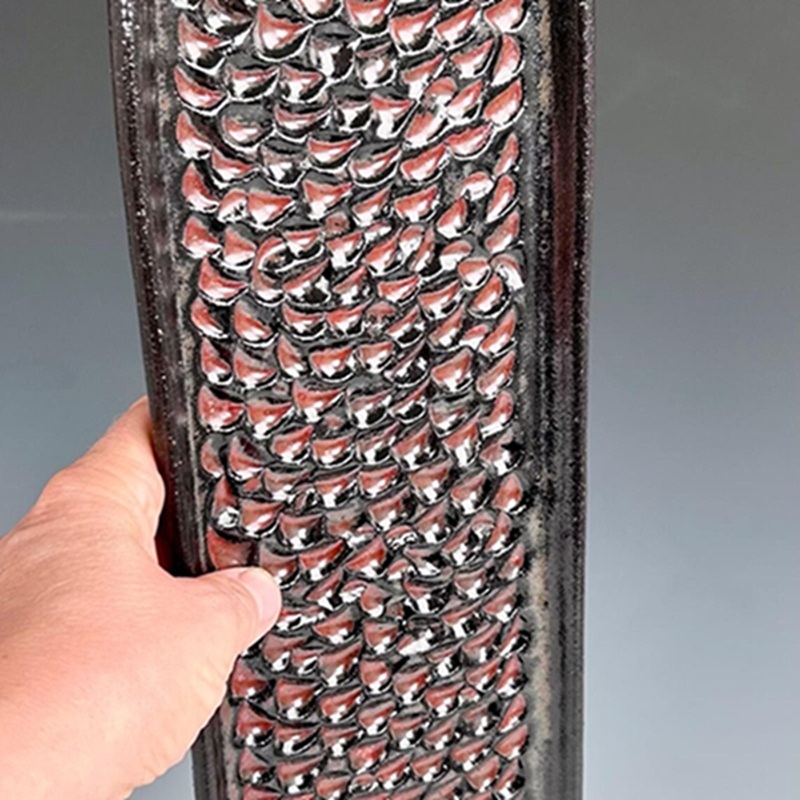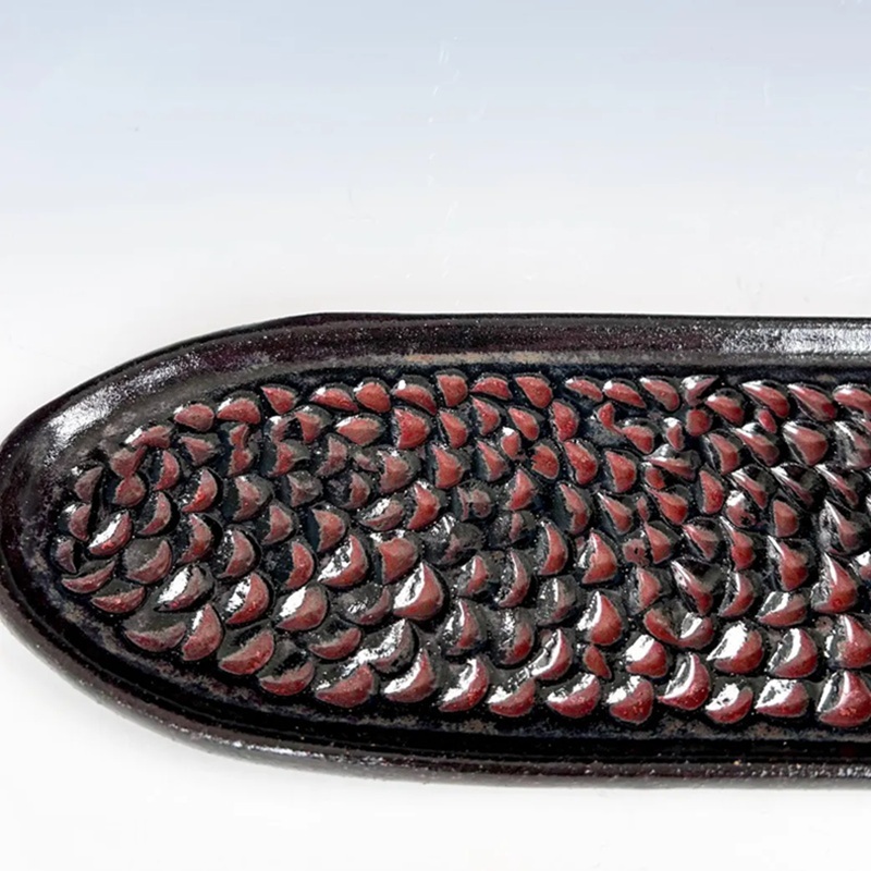 Glossy red black scale texture ceramic long serving tray — decor & serving dual-use
