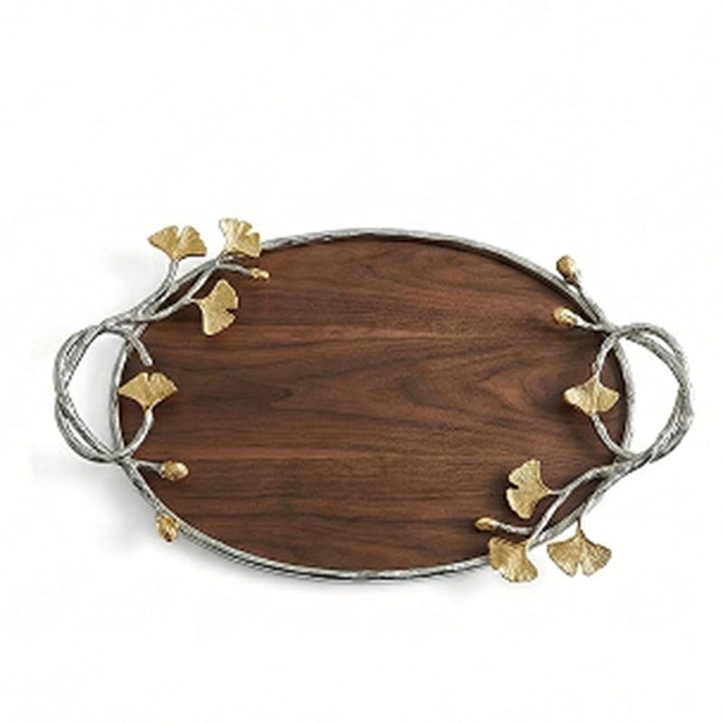 Ginkgo Leaf Decorative Walnut Wood Serving Tray