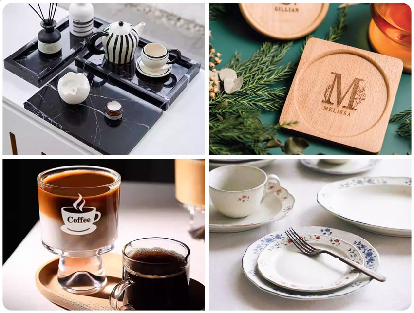 La sérigraphie est parfaite pour les bols en marbre, les sous-verres, les pagaies et autres articles similaires, offrant une solution rapide et abordable.