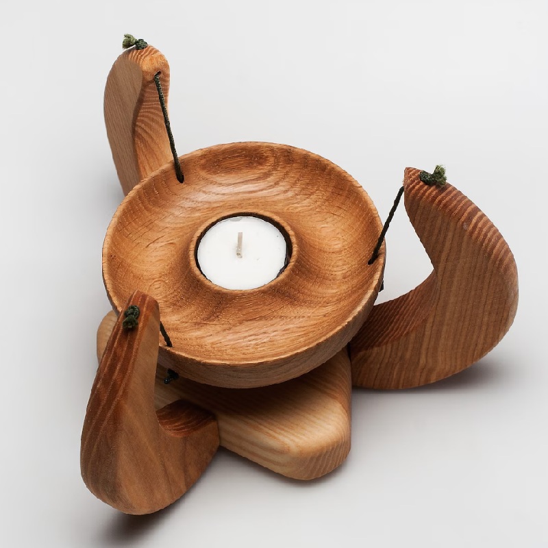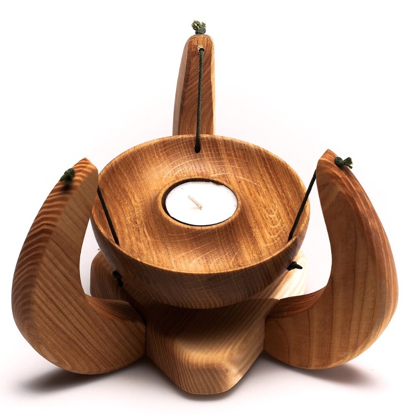 Elegant minimalist wooden suspended tealight holder, design for whimsical floating ambient light